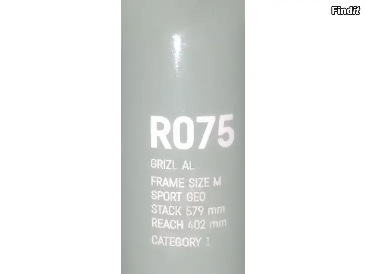 Merkinnät pystyputkesa: RO75 grizl Al, frame size M. Sport geo. Stack 579 mm. Reach 402 mm.