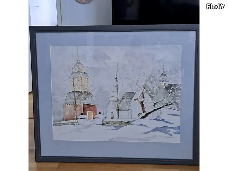 Akvarelktavla av Närpes kyrka! Konstnär inger Rönnholm! Ny ram, glas och pasoature! Storlek