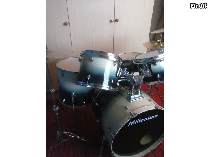 Pelkät pöntöt myynnissä nyt. Tomit: 12/13/16 ja bassari 22. Kalvot hyvät. Huomaa ns kelluva ripustus etutomeilla. 2- värisyys alkuperäinen, ei itse suihkittu. Aivan hyvä laatu näissä on, eivätkä aikoinaan ole olleet niitä halvimpia Milleniumeja.