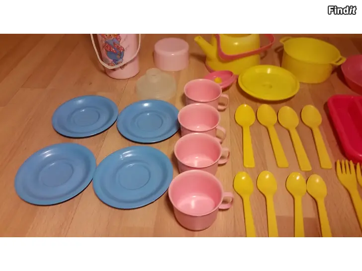 Kuvanmukaiset muoviset 1990-luvun leikkiastiat