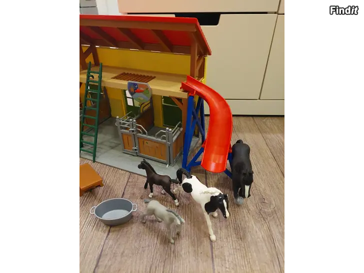 Schleich stall, staket, 6 hästar m.m. Oklart om hundarna är Schleich men allt annat är äkta Schleich. I gott skick, inget är söndrigt. Finns i Bennäs men kan fås till Jakobstad. Perfekt som julklapp!