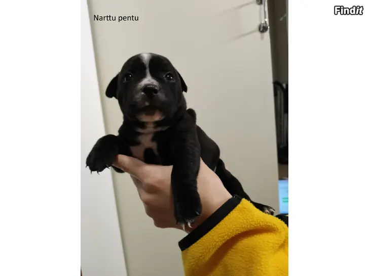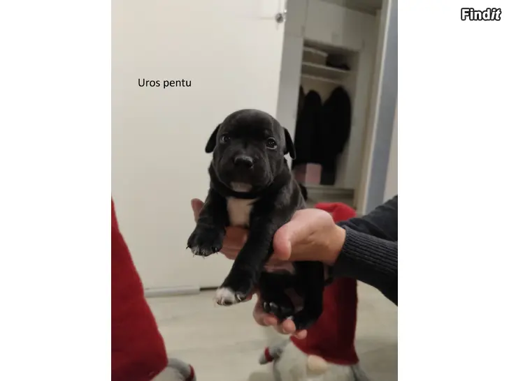 3 aivan ihanaa staffi pentua etsii loppuelämän koteja syntyneet 11.11.2025. Pentueessa 2 urosta ja 1 narttu. Kodit valitaan huolellisesti. pennut ovat olleet osa perheemme arkea ja kasvavat kodinomaisessa ympäristössä. pennut madotetaan luovutukseen asti suositusten mukaisesti. luovutetaan eläinlääkärin tarkastamina ja sirutettuina. luovutus 30.12.2025, pentujen ollessa 7 viikon ikäisiä. varausmaksu 150 €, joka vähennetään hinnasta. Varausmaksua ei palauteta mikäli ostaja peruu kaupan. ota rohkeasti yhteyttä ja kerro, millainen koti sinulla olisi tarjota.