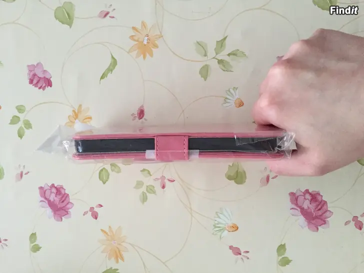 Säljes en extra oanvänd Rosegold / rosa läder fodral. Med blom o. fjäril motiv.