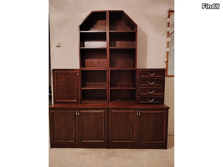 Bokhylla med måtten 160 cm lång, 41 cm bred å 190 cm hög säljes som obehövlig. Finns i Kalax.