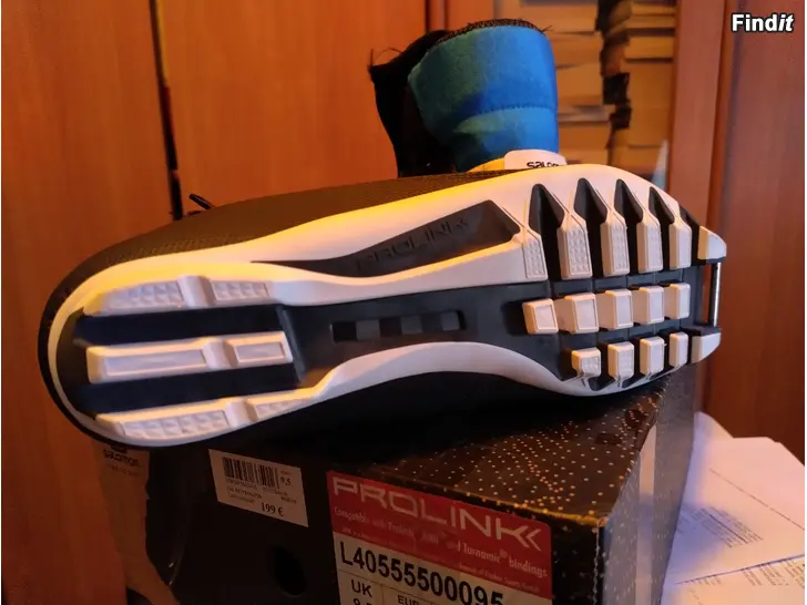 Skidskor Salomon Prolink nr 44. Små i storleken, passade inte åt mig som normalt brukar kunna klara mig med nummer 43, dessutom ganska smala. Sparsamt använda och i gott skick. Prolink = passar till 100 med NNN och Rottefellabindningar. Rör sig vid behov mellan Nykarleby-Vasa, men kan också skicka. Kostnad tillkommer för det.