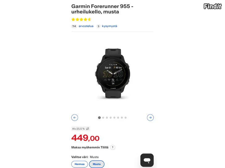 Köpt från Verkkokauppa.com den 16 augusti 2025. I felfritt skick. Säljs eftersom den blivit överflödig – jag fick en annan klocka i present.