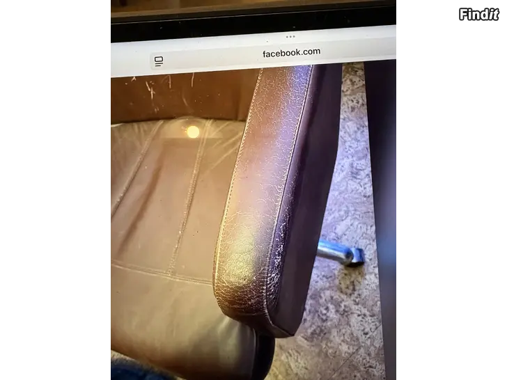 Tv/ kontorsstol säljes, lila-aktigt konstläder. Snurrar och gungar, mycket bekväm. Lite nött på armstöden
