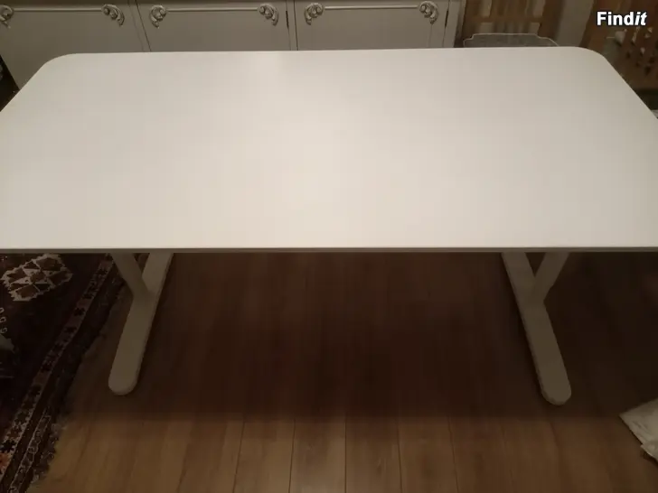 IKEA Bekant 80x160 cm. Manuellt ställbart i höjdled. Enda skavanken är lämningar av filtlappar som varit under skrivbordslampans fäste. Skivan är avmonterad för enklare transport, alla bultar etc finns kvar.