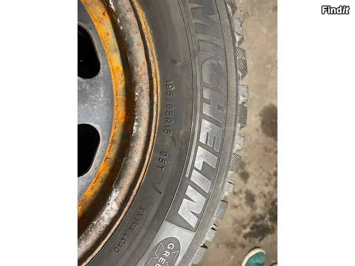 Fälgerie med däck. Två michelin och två andra däck. Nubbarna har tagits bort.