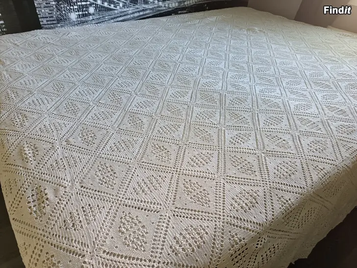 Myydään kaunis aivan ihana Vintage leveän sängyn sängynpeitto koko n. 250cm*260cm. Aito käsin virkattu n. 17*17cm paloista. Vähäiselle käytölle jäänyt, kun liian kapea omaan sänkyyn.
