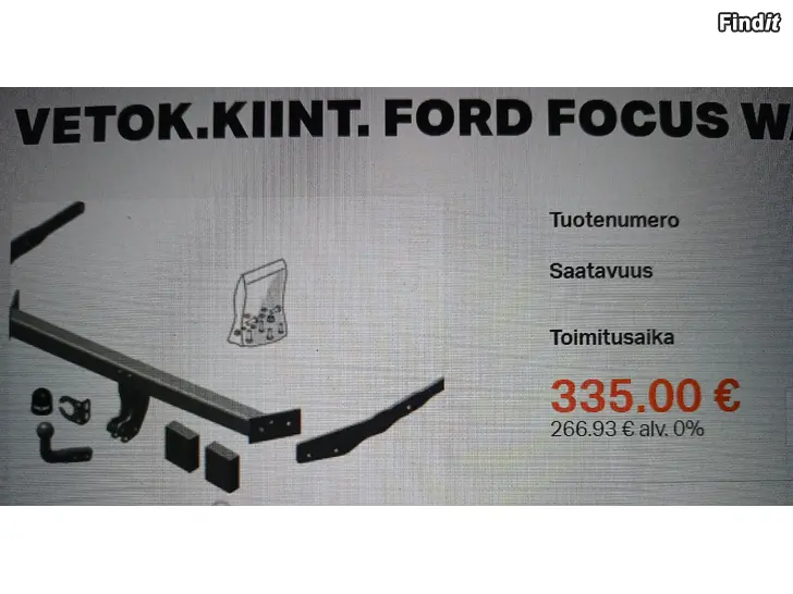 UUSI käyttämätön ALKUPERÄINEN Ford Focus Wagon farmarin Kovil 26645L vetokoukku tehtaanpaketissa joka sopii 2011- ja siitä eteenpäin oleviin malleihin. Kuten toisesta kuvasta näet ovh. 335€ tämän saat 190€. Nyt kannattaa olla nopea, ei varauksia vaan ensimmäiselle myyn. Tarvittaessa voin myös lähettää postimaksua vastaan. Ps. Näillä kuvilla lisähuomiota, lisään kuvia kun ehdin tai lähetän ostajalle suoraan vaikka WhatsApp viestinä. Parhaiten mut tavoittaa numerosta 0503556677 soitto/viesti