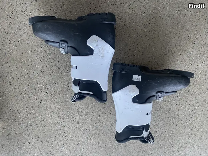 Twintip Atomic skidor 114 cm och Head pjäxor ca strl 35-37. Finns spår av användning, helhetsintrycket ok.